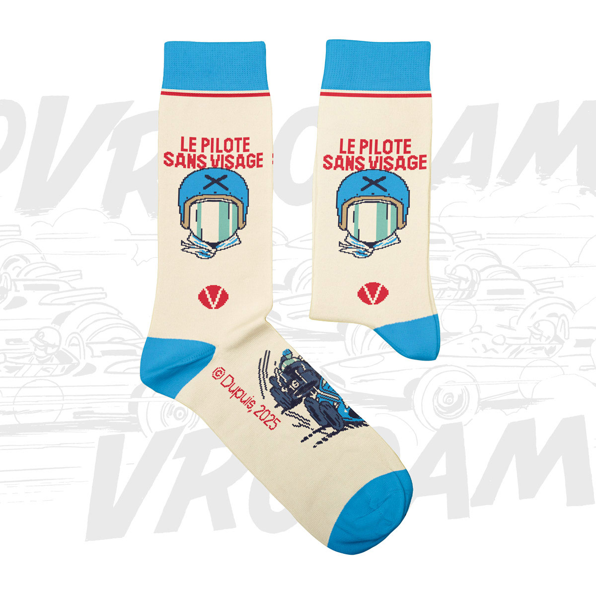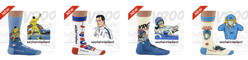 Découvrez les 4 nouvelles paires de chaussettes de Michel Vaillant : des Vrrooaw, le pilote sans visage, Michel au volant, le 13 est au départ... de quoi vous faire plaisir.