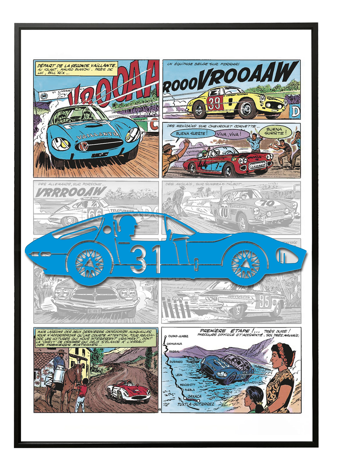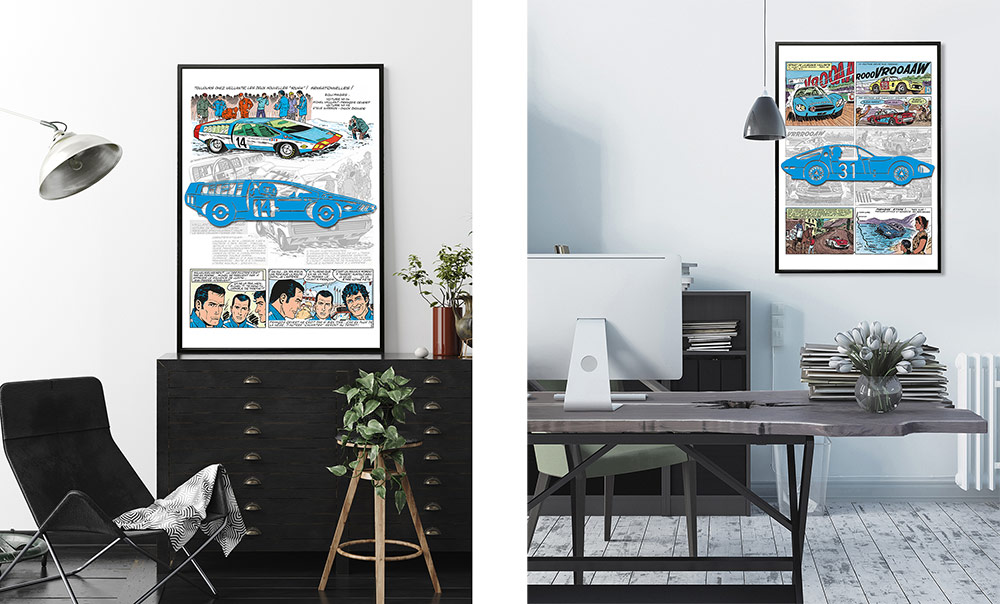 Chaque modèle représente une Vaillante imaginée par Jean Graton, avec en fond, la page de la bande dessinée où s'illustre la voiture.