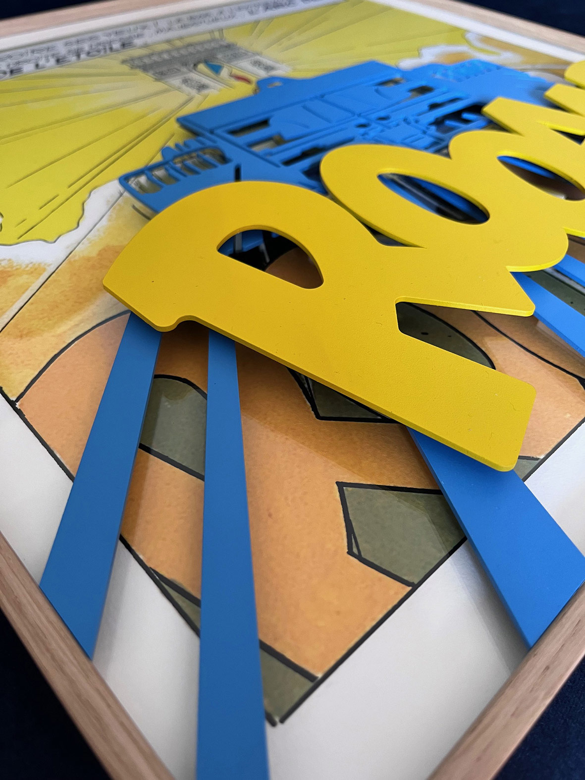 Collection unique des Vaillante les plus iconiques de la saga Vaillant avec une silhouette en acier, apposée sur la vitre d'un cadre en aluminum.