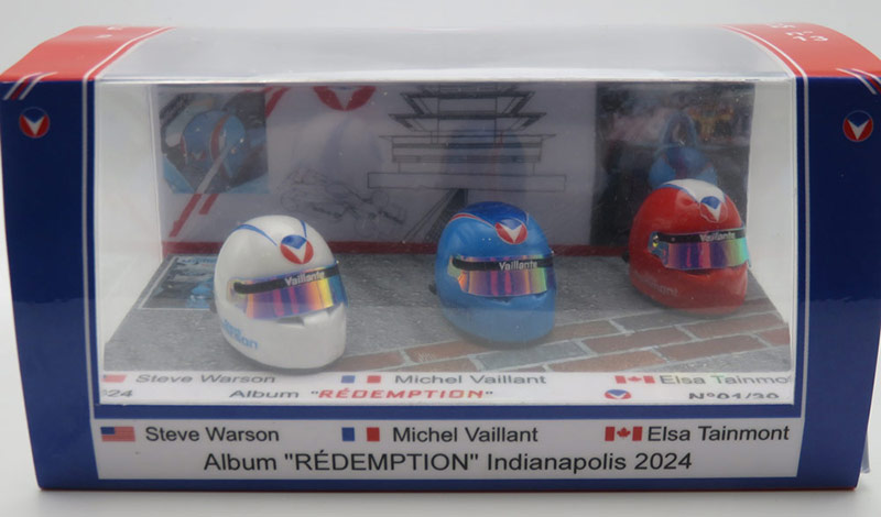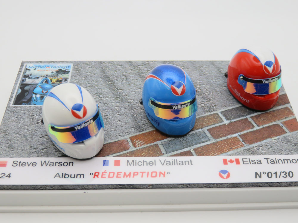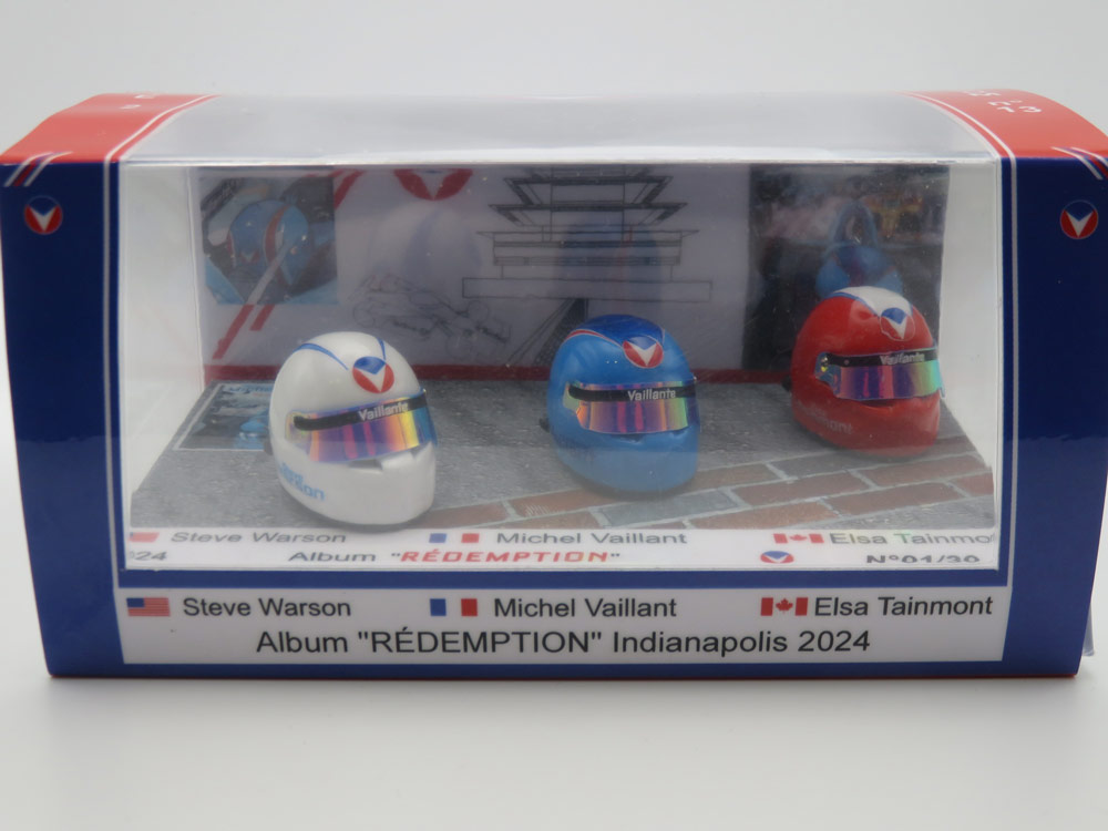 L'artisan français Jean François Croizy de JFC Créations propose une magnifique boîte collector des 3 casques au 1/12ème des pilotes Vaillante dans le nouvel album "Rédemption" (sortie le 17 mai)
