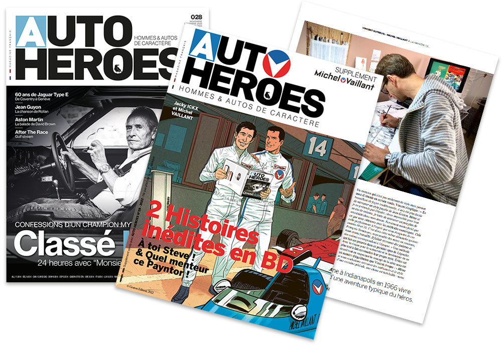 Le n°28 du magazine Auto Heroes met à l'honneur la nouvelle série de l'univers Michel Vaillant, Légendes, dans un magnifique supplément de 20 pages qui contient deux histoires inédites en BD : « À toi Steve ! » et « Quel menteur ce Payntor !