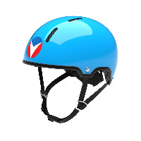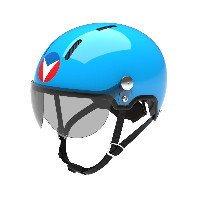 Michel Vaillant porte un casque de vélo et de ski pour préparer sa saison sportive, un nouveau modèle dans la gamme Veldt qui existe en deux versions : bleue ou vintage "Original" (flèche rouge sur fond blanc, comme les tout premiers albums).