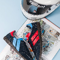 Pour cette 5ème édition, c'est une paire de Pulse à l'allure rétro-preppy qui porte les couleurs de Michel Vaillant : design aérodynamique pour s'élancer avec vitesse, semelles en caoutchouc recyclé pour mettre la gomme, détails vaillamment asymétriques...